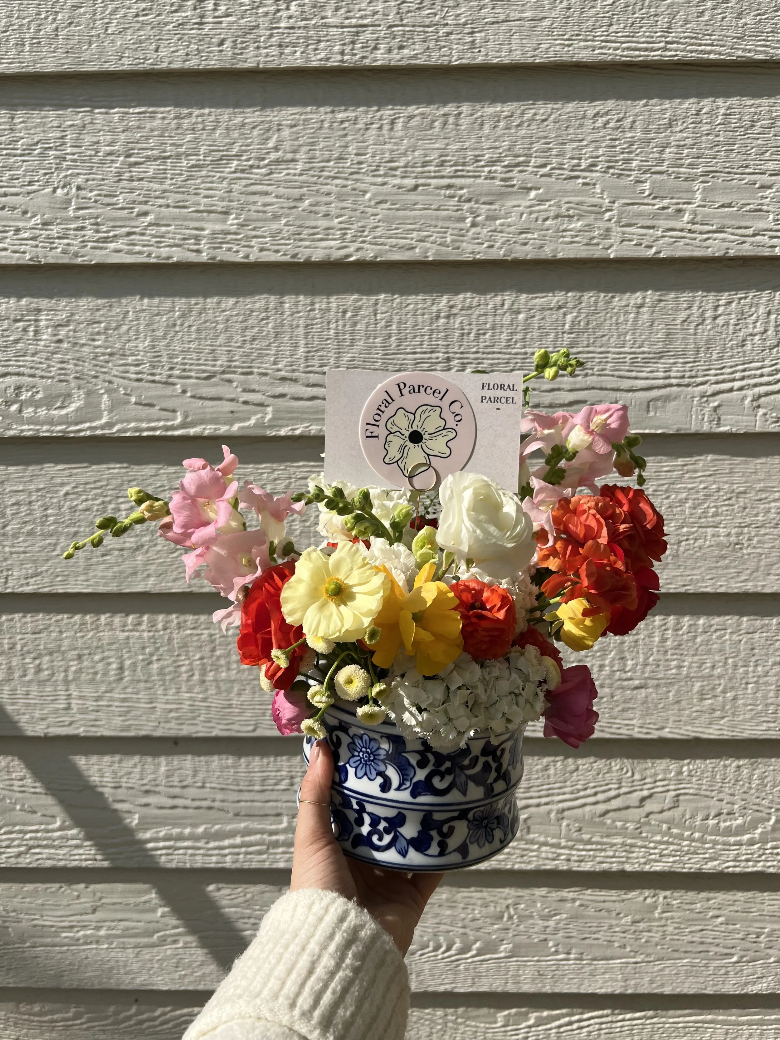 Floristry with an aim to sustainably create whimsical, non-traditional florals with intention & flare.